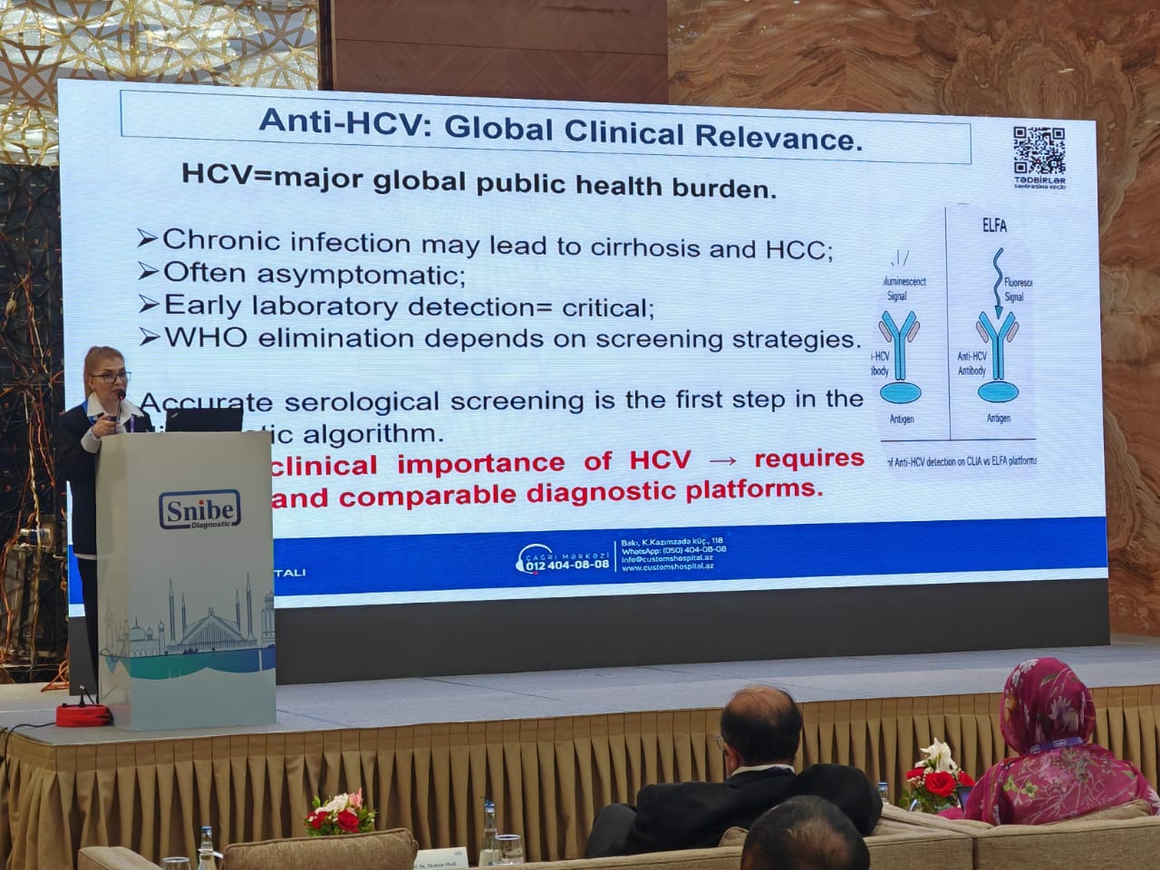 Mərkəzi Gömrük Hospitalının laboratoriya rəisi Dr. Səbinə İbrahimova 04 aprel 2026-cı il tarixində Pakistanın İslamabad şəhərində keçirilən Beynəlxalq Laborator Tibb Simpoziumunda “Snibe Maglumi X8 və VIDAS 3 platformalarında Anti-HCV anticisimlərinin təyini nəticələrinin müqayisəli analizi” mövzusunda təqdimatla çıxış edib.