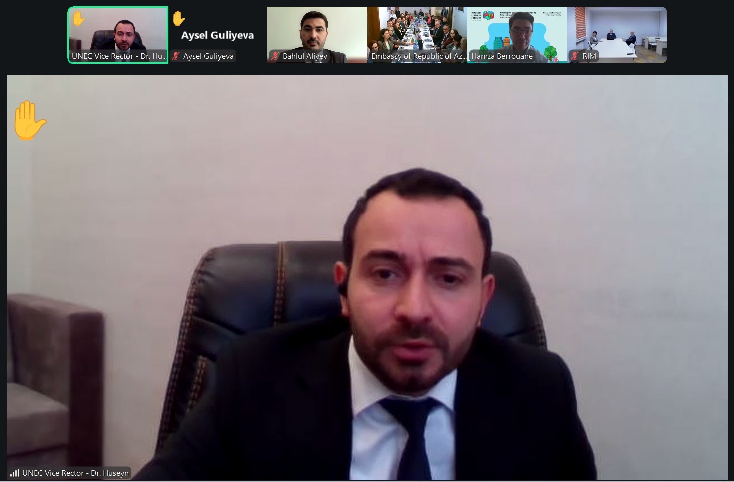 UNEC-in beynəlxalq əlaqələr üzrə prorektoru, i.f.d. Hüseyn Həsənov çıxışı zamanı tədbirin əhəmiyyətindən bəhs edib, bu kimi təşəbbüslərin beynəlxalq akademik əməkdaşlığın inkişafına töhfə verdiyini vurğulayıb.