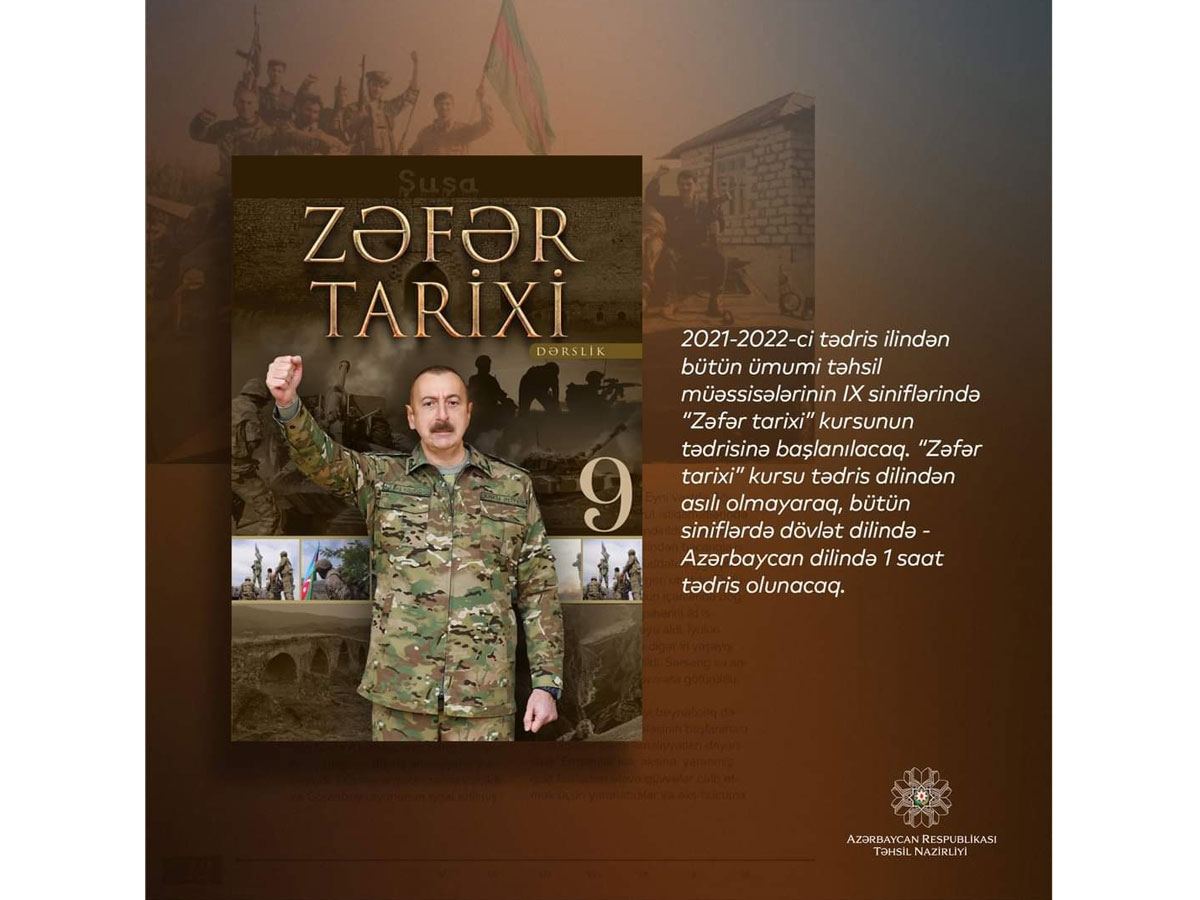 2021-2022-ci tədris ilindən bütün ümumi təhsil müəssisələrinin IX siniflərində "Zəfər tarixi" kursunun tədrisinə başlanılacaq.