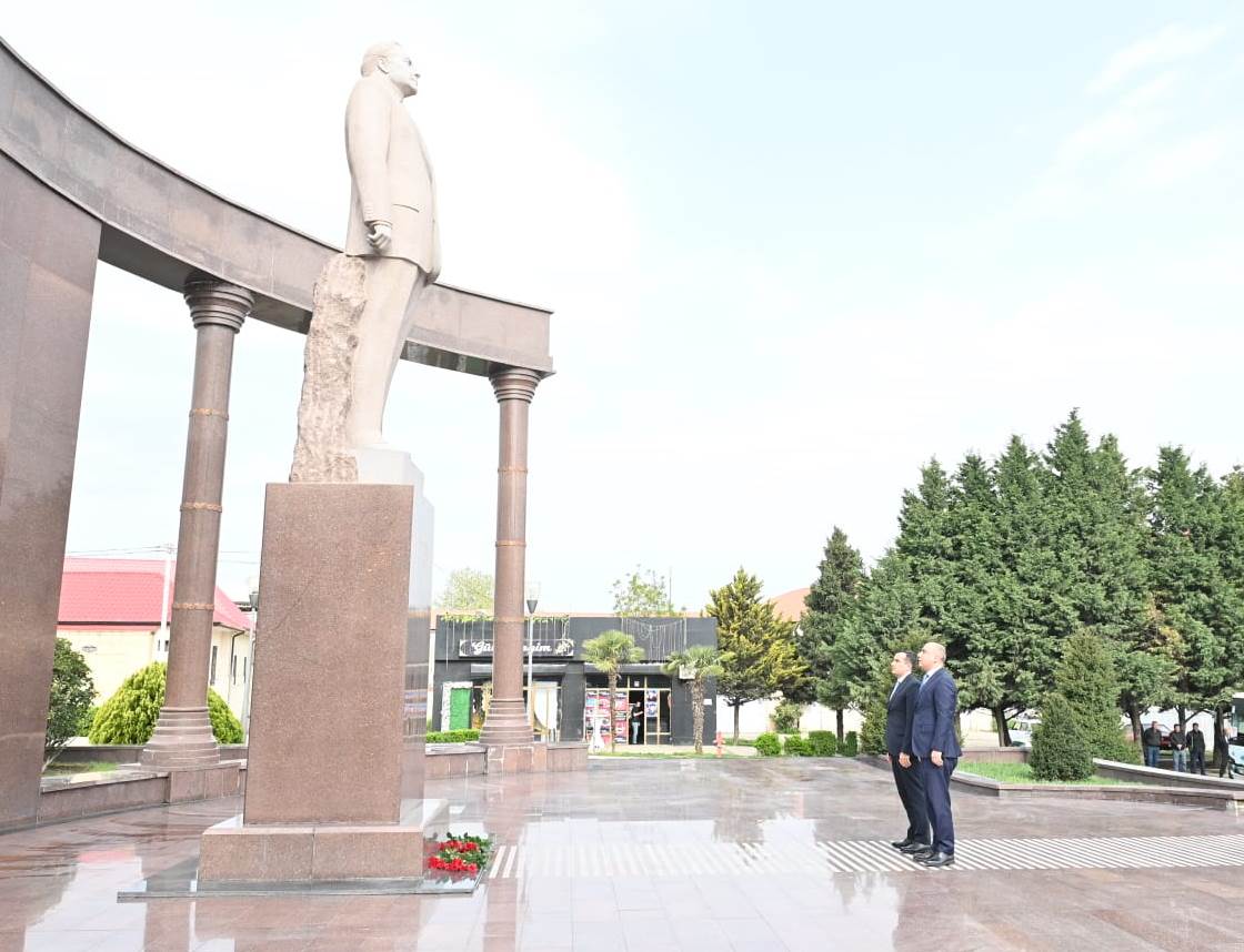 Mərasimdən əvvəl ulu öndər Heydər Əliyevin abidəsi ziyarət edilib, önünə gül dəstələri düzülüb.