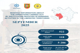 İşğaldan azad edilmiş ərazilərdə minatəmizləmə fəaliyyətinə cəlb olunmuş qurumlar tərəfindən sentyabr ayında icra olunan əməliyyatlar barədə məlumat açıqlanıb. Azərbaycan Respublikasının Minatəmizləmə Agentliyindən (ANAMA) SİA-ya verilən məlumata görə, Tərtər, Ağdam, Ağdərə, Laçın, Füzuli, Şuşa, Xocalı, Xankəndi, Kəlbəcər, Xocavənd, Cəbrayıl, Qubadlı və Zəngilanda, o cümlədən Qazax rayonunun işğaldan azad edilmiş Bağanıs Ayrım, Aşağı Əskipara, Xeyrımlı, Qızılhacılı kəndlərində 522 piyada əleyhinə mina, 118 tank əleyhinə mina, 5286 Partlamamış Hərbi Sursat (PHS) aşkarlanıb.