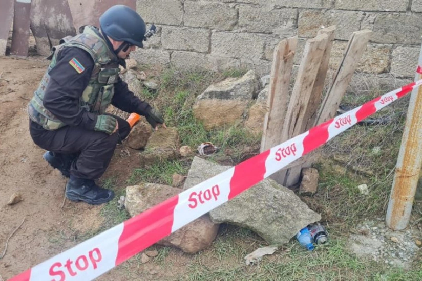 Hüquq mühafizə orqanı əməkdaşları ilə birgə ərazidə müvafiq təhlükəsizlik tədbirləri görüldükdən sonra hadisə yerinə baxış zamanı aşkar edilmiş sursatın döyüş tətbiqinə yararlı 1 ədəd partladıcısı üzərində olan F-1 əl qumbarası olduğu müəyyən edilib.