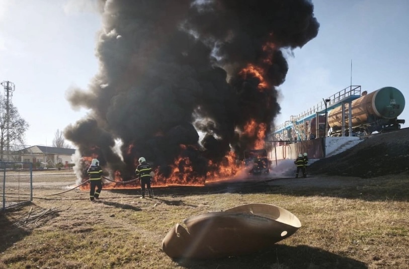 Yaxınlıqdakı yanacaq çənləri yanğından mühafizə olunub.