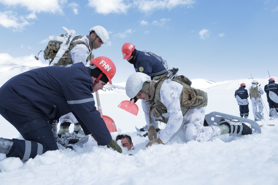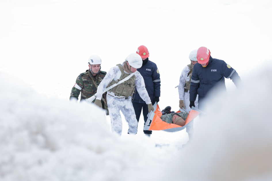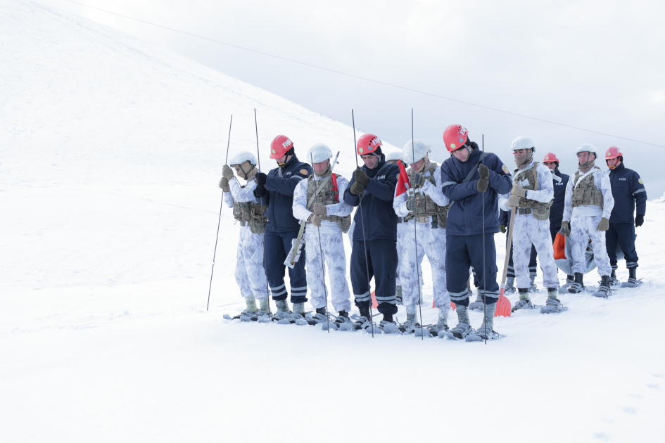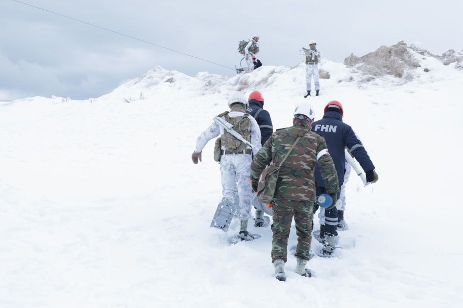 Təlimdə FHN-in xilasediciləri Əlahiddə Ümumqoşun Ordunun müvafiq bölmələri ilə birgə mürəkkəb relyefli dağlıq ərazidə əlverişsiz hava şəraitində şərti axtarış-xilasetmə işləri aparıb, şərti qar uçqunu altında qalan “zərərçəkmişlərin” xilasetmə avadanlıqlarından istifadə olunmaqla axtarışını aparıb və onların “xilası edilərək ilkin yardımın göstərilməsi” üzrə praktiki tapşırıqları yerinə yetiriblər.