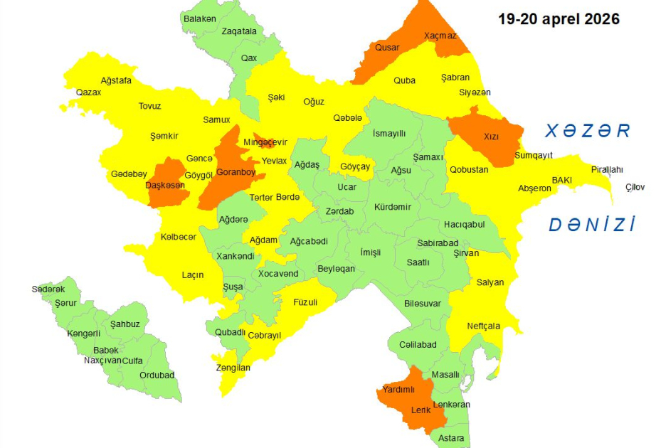 Aprelin 19-20-də Bakıda və Abşeron yarımadasında eləcə də, bəzi bölgələrdə gözlənilən küləkli hava şəraiti ilə bağlı sarı və narıncı xəbərdarlıq verib.