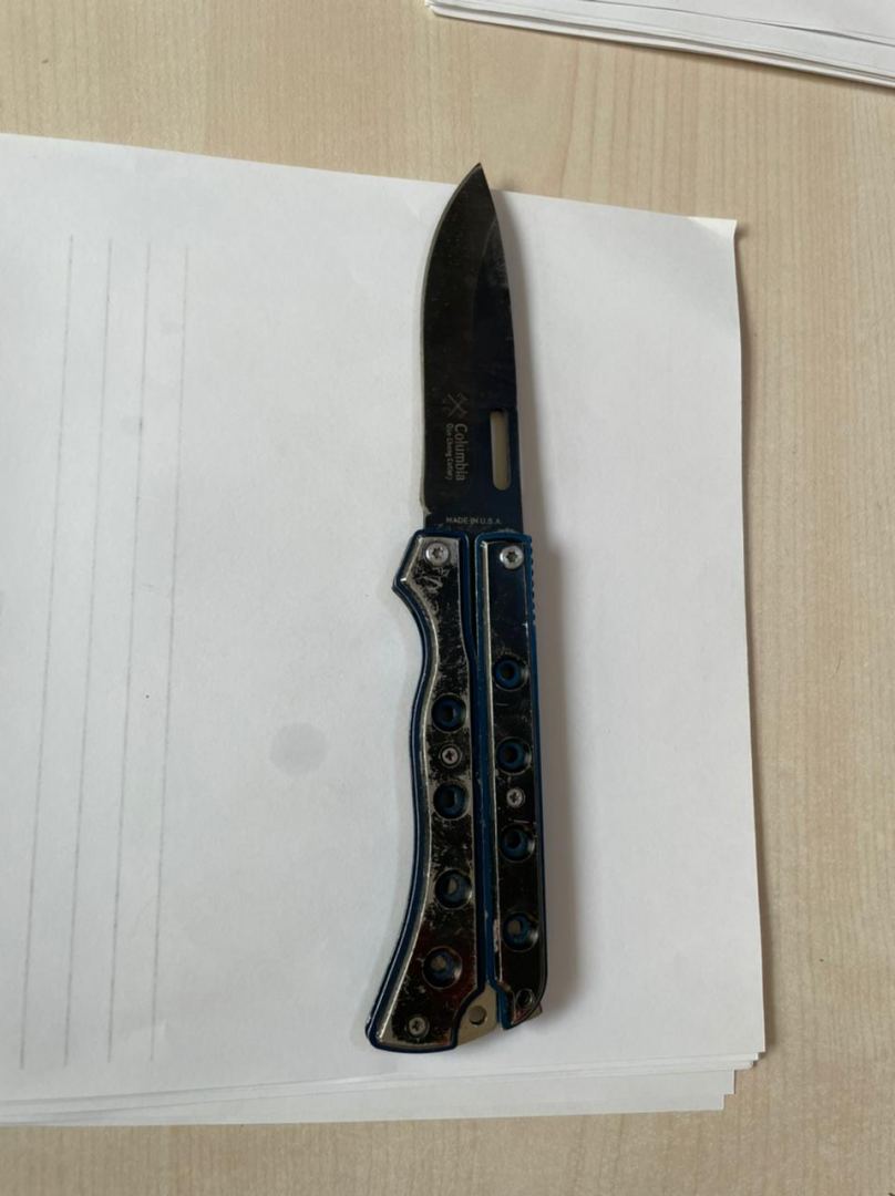 Saxlanılan zaman onun üzərindən bir ədəd bıçaq götürülüb.