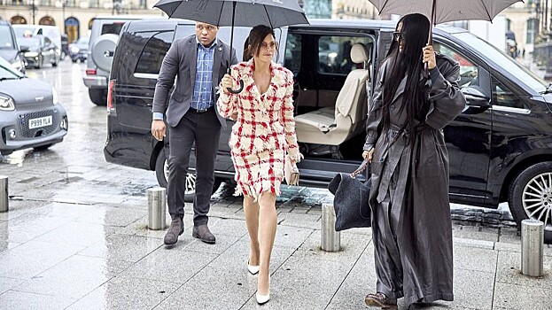 Stilist Lo Rouçun müşayiəti ilə Fransa paytaxtında gəzən 56 yaşlı müxbir paparassilərin diqqətini 2004-cü il kolleksiyasından qırmızı və ağ rəngli tvid rəngli Versace kostyumunda çəkib.