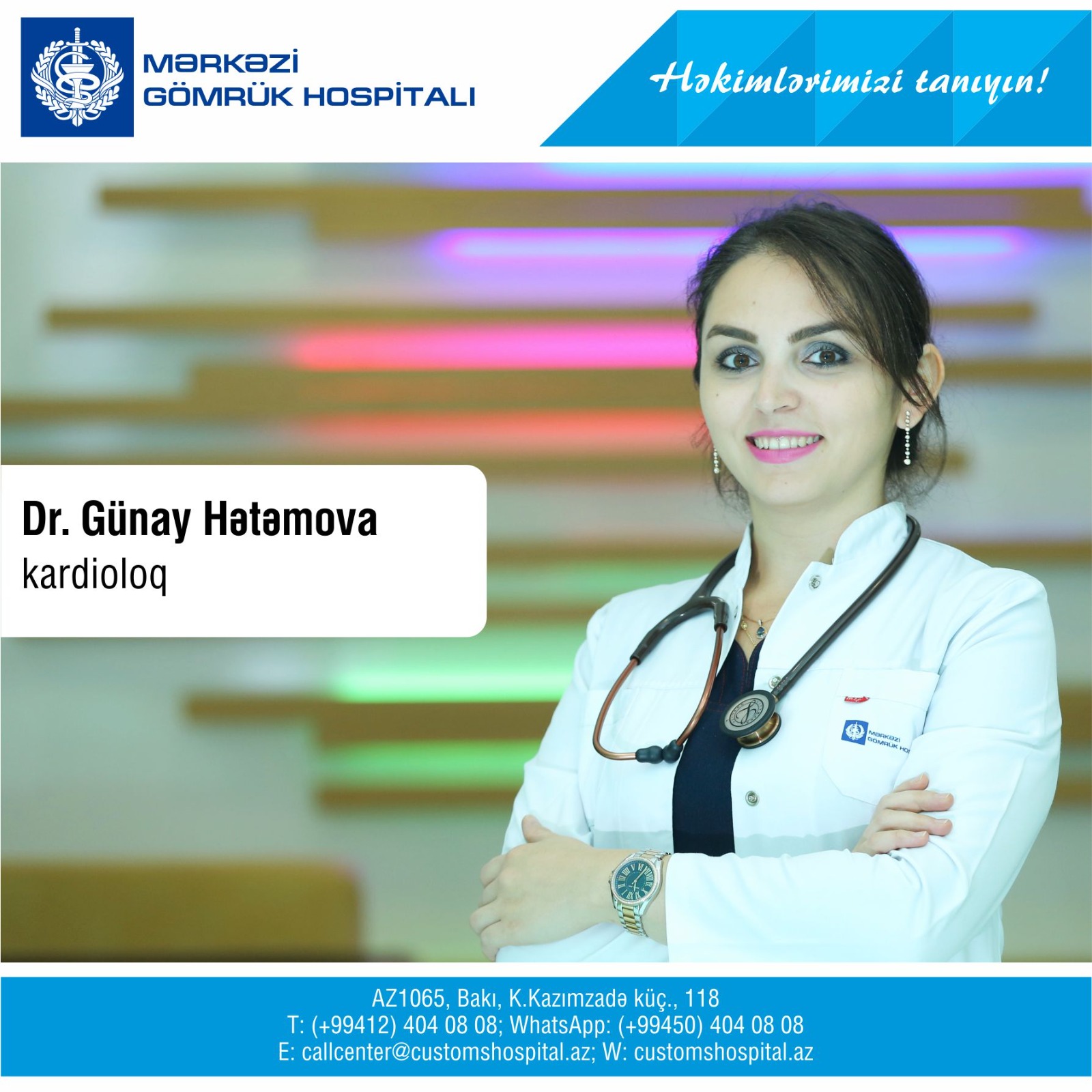 Dr.Günay Hətəmova Azərbaycan Kardiologiya Cəmiyyətinin və Avropa Kardiologiya Cəmiyyətinin üzvüdir. Günay həkimin qəbuluna yazılmaq üçün əlaqə nömrəsi: (012) 404-08-08.