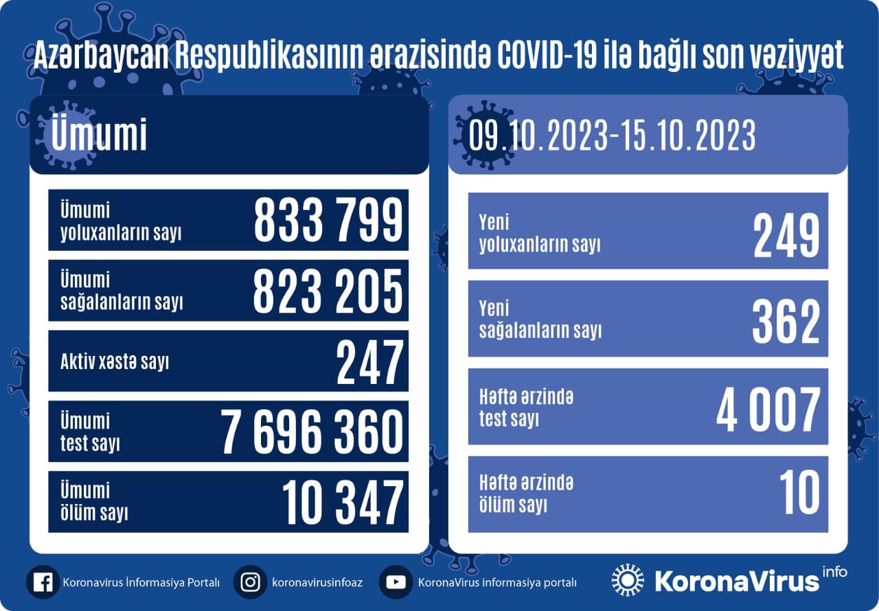 COVID-19-a yoluxan 362 nəfər sağalıb. Həftə ərzində ölüm sayı 10 nəfərdir.