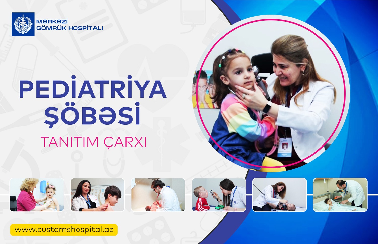 Balaca pasiyentlərə həkim-pediatr müayinəsi ilə bərabər, otolarinqoloq, oftalmoloq, travmatoloq, kardioloq, qastroenteroloq, uroloq, uşaq cərrahı və digər müayinələr də həyata keçirilir. Hospitalda ambulator və stasionar şəraitdə balaca pasiyentlərə göstərilən tibbi xidmətlərlə yanaşı, valideynlərə uşağın sağlamlığı və inkişafı barədə vacib məlumatlar verilir ki, bu da kompleks şəkildə tez biz zamanda uşağın sağalması və gələcək inkişafında mühüm rol oynayır.