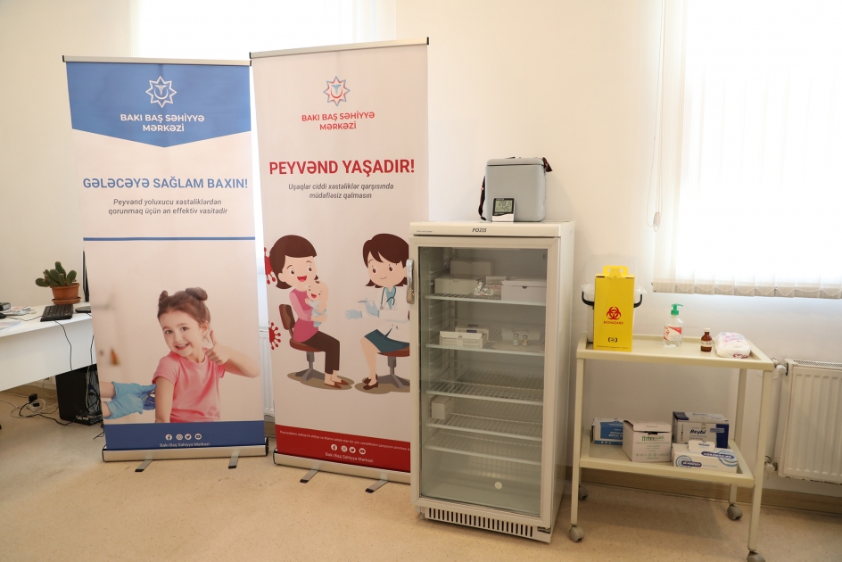 İlkin səhiyyə xidməti göstərən tibb müəssisələrində vaksinlərin etibarlı saxlanılması məqsədilə peyvənd otaqları təkmilləşdirilib, “soyuq zəncir” sistemi daha da gücləndirilib. Tibbi Ərazi Bölmələrini İdarəetmə Birliyindən (TƏBİB) SİA-ya bildirilib ki, qurumun tabeliyində fəaliyyət göstərən Bakı Baş Səhiyyə Mərkəzinin strukturuna daxil olan və uşaqlara tibbi xidmət göstərən 48 tibb müəssisəsində vaksinlərin düzgün qaydada saxlanılması üçün yeni avadanlıqlar alınaraq “soyuq zəncir” sistemi tam qurulub. Bu avadanlıqlarla işləmək üçün mütəxəssislər də xüsusi təlimlərə cəlb olunub.