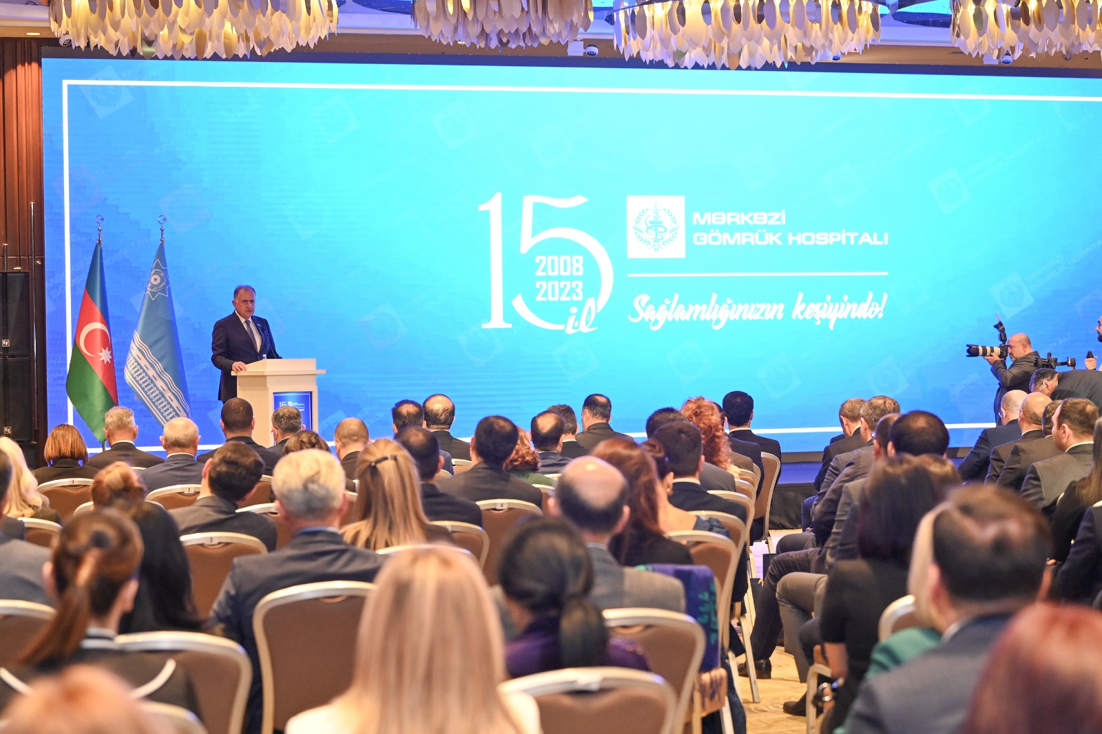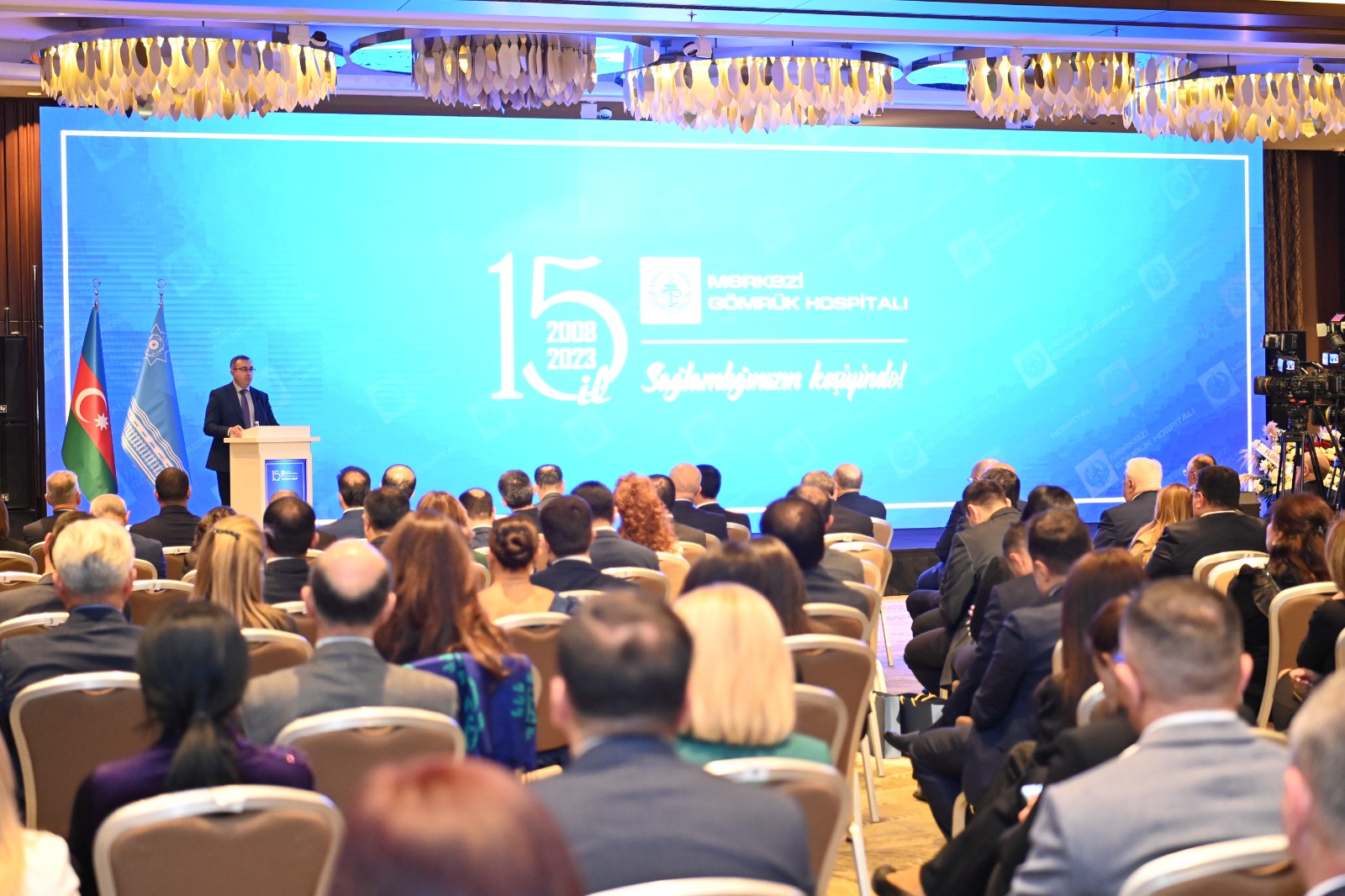 Tədbirdə əvvəlcə Azərbaycan Respublikasının Dövlət Himni səslənib. Tədbiri giriş sözü ilə açan Dövlət Gömrük Komitəsinin Tibbi Xidmət İdarəsinin rəisi Ceyhun Məmmədov ilk öncə qonaqlara dəvəti qəbul edib, tədbirdə iştirak etdiklərinə görə təşəkkürünü bildirib. Ceyhun Məmmədov çıxışında bildirib: “2008-ci ilin 25 dekabr tarixində Azərbaycan Respublikasının Prezidenti İlham Əliyevin xeyir-duası ilə fəaliyyətə başlamış Mərkəzi Gömrük Hospitalı 15 il ərzində Azərbaycanın qabaqcıl klinikalarından birinə çevrilmişdir”. Hospitalın yubiley ilinin müstəqil dövlətimizin memarı Ümummilli lider Heydər Əliyevin 100 illik yubiley ilinə təsadüf etdiyini qeyd edən C.Məmmədov Ulu öndər Heydər Əliyevin ölkəmizdə səhiyyənin inkişafında çox böyük əməyi və əvəzsiz rolu barədə, eləcə də Mərkəzi Gömrük Hospitalının 15 il ərzində əldə etdiyi uğurlar barədə danışıb.