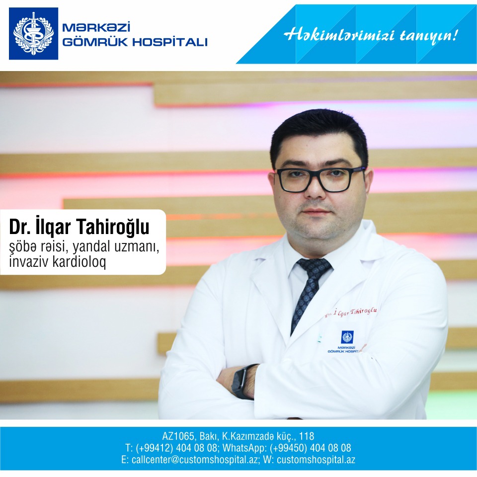 Sizə pasiyentlərinin hörmətini və etibarını qazanmış Kardiologiya şöbəsinin rəisi, yandal uzmanı, invaziv kardioloq dr.İlqar Tahiroğlunu təqdim edirik. SİA xəbər verir ki, dr.İlqar Tahiroğlu Mərkəzi Gömrük Hospitalının Kardiologiya şöbəsində TAVİ, mitral klip, perifer damar angioplastikası, koronar angioplastika, sağ hemodinamik kateterizasiya, PFO qapadılması, ASD qapadılması, karotis stent və ürəyə kardiostimulyator yerləşdirilməsi ilə məşğul olur. Həkim barədə daha ətraflı məlumat almaq üçün bu linkə daxil ola bilərsiniz: