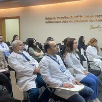 Mərkəzi Gömrük Hospitalının Reanimasiya və Anesteziologiya şöbəsinin rəisi, anestezioloq-reanimatoloq Tural Sadıqov 2 fevral 2024-cü il tarixində “Regional anesteziya və onun üstünlükləri” mövzusunda təqdimatla çıxış edib. Tədbirdə Mərkəzi Gömrük Hospitalının rəis müavini Nabil Seyidov, Uşaq Cərrahiyyəsi şöbəsinin rəisi Vüsal Cəfərov, Təcili Tibbi Yardım şöbəsinin təcili tibbi yardım həkimi Tofiq Bayramov, həkim-psixiatrı, t.ü.f.d. Dr.Gülay Məmmədzadə, reanimotoloq və anestizioloq ixtisası üzrə təhsil alan həkim-rezidentlər və tibb tələbələri iştirak ediblər. Tural həkimin çıxışını Mərkəzi Gömrük Hospitalının youtube kanalında izləyə bilərsiniz: