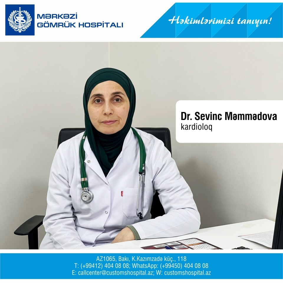 Səmimiyyəti və peşəkarlığı ilə seçilən Mərkəzi Gömrük Hospitalının Kardiologiya şöbəsinin kardialoqu Dr.Sevinc Məmmədovanı təqdim edirik.