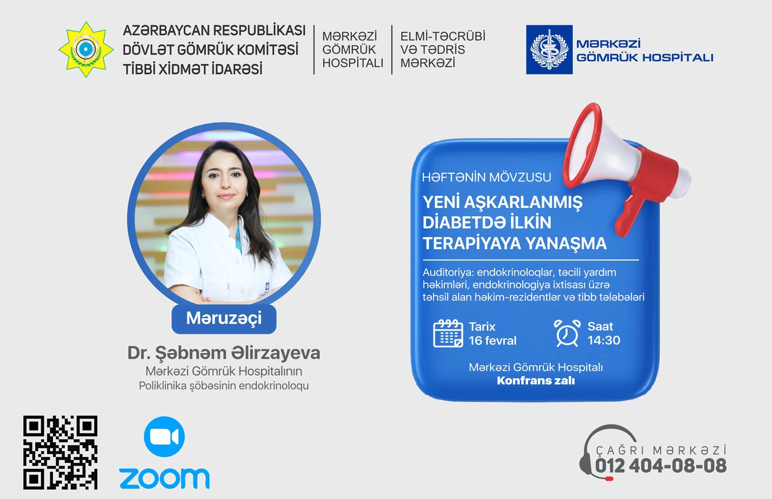 Mərkəzi Gömrük Hospitalının Poliklinika şöbəsinin endokrinoloqu Şəbnəm Əlirzayeva 16 fevral 2024-cü il tarixində saat 15.00-da “Yeni aşkarlanmış diabetdə ilkin terapiyaya yanaşma” mövzusunda təqdimatla çıxış edəcək. SİA xəbər verir ki, tədbirdə Mərkəzi Gömrük Hospitalının endokrinoloqları, təcili yardım həkimləri, endikrinologiya ixtisası üzrə təhsil alan həkim-rezidentlər və tibb tələbələri iştirak edə bilərlər. Qeydiyyatdan keçən tibb mütəxəssislərinə telefon və ya e-mail vasitəsilə təsdiq məktubu göndəriləcək. Virtual qoşulmaq istəyənlər üçün isə Zoom link göndəriləcəkdir. Qeydiyyat üçün keçid: https://ref.az/Np5nrN. Dr. Şəbnəm Əlirzayeva Mərkəzi Gömrük Hospitalında şəkərli diabet, metabolik sindrom, insulinoma, diffuz toksiki ur, endemik ur, hipo-hipertireodizm, miksedema, xaşimoto uru, kəskin və yarımkəskin tireodit, akromeqaliya, hiperprolaktinemiya, şəkərsiz diabet, hiperkortisizm, feoxromositoma, hipoparatireodizm, hiperparatireodizm, hirsutizm, predmenstrual sindrom və s. xəstəliklərin müalicəsini həyata keçirir. Həkim barədə daha ətraflı məlumat almaq üçün bu linkə daxil ola bilərsiniz: Dr. Şəbnəm Əlirzayeva 2009-cu ildə Azərbaycan Tibb Universitetinin müalicə-profilaktika fakültəsini bitirmiş, 2009-2010-cu illərdə Respublika Endokrinoloji Mərkəzində endokrinologiya ixtisası üzrə internatura, 2010-2012-ci illərdə Rusiyanın paytaxtı Moskva şəhərində FDM Endokrinoloji Elmi Mərkəzində ordinatura keçmişdir. Şəbnəm həkim 2012-ci ildən etibarən Mərkəzi Gömrük Hospitalnda həkim-endokrinoloq kimi fəaliyyət göstərir.