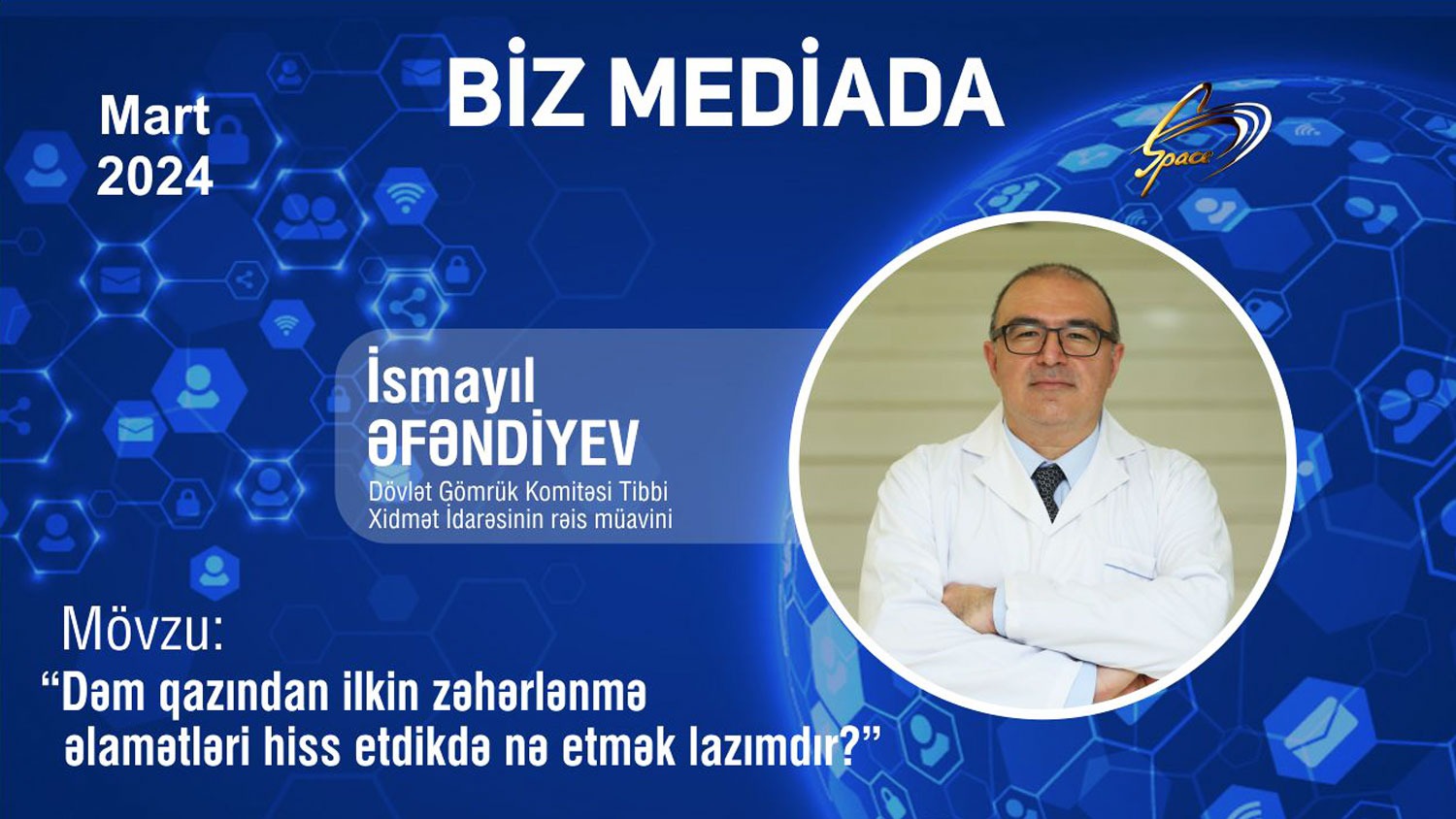 Azərbaycan Respublikası Dövlət Gömrük Komitəsi Tibbi Xidmət İdarəsinin rəis müavini t.ü.f.d., dosent İsmayıl Əfəndiyev Space TV-nin “Xəbər” proqramına “Dəm qazından ilkin zəhərlənmə əlamətləri hiss etdikdə nə etmək lazımdır?” mövzusunda müsahibə verib. Süjeti Sizə təqdim edirik.