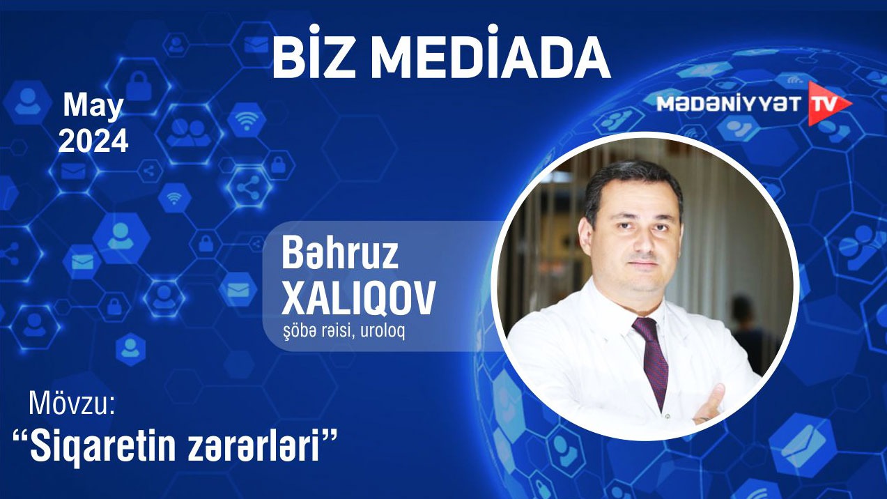 Mərkəzi Gömrük Hospitalının Urologiya şöbəsinin rəisi, uzman uroloq Bəhruz Xalıqov AZTV Mədəniyyət TV-nin “Səhər” proqramına “Siqaretin zərərləri” mövzusunda müsahibə verib.
