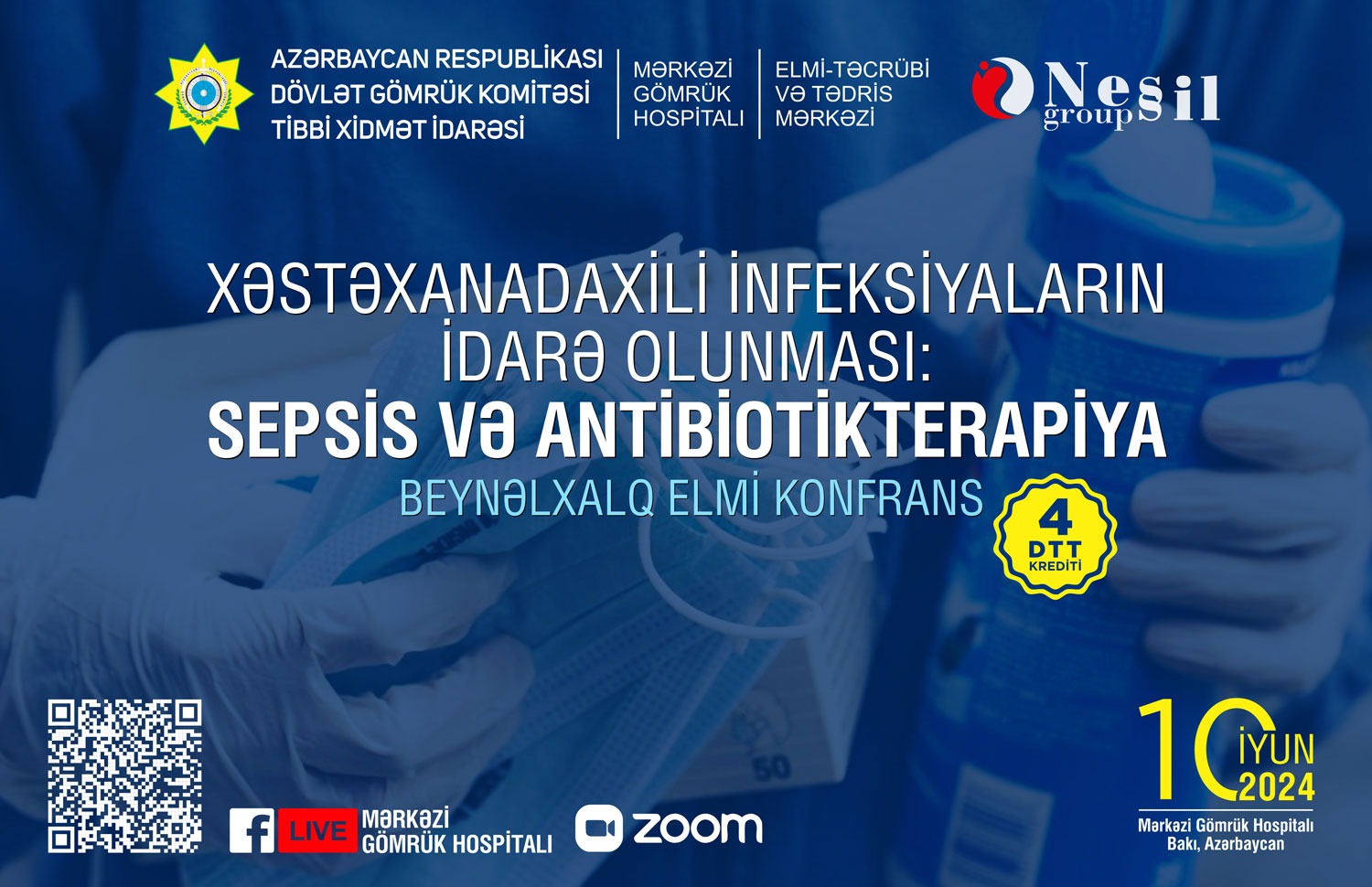 10 iyun 2024-cü il tarixində Azərbaycan Respublikası Dövlət Gömrük Komitəsinin Tibbi Xidmət İdarəsinin Elmi-Təcrübi və Tədris Mərkəzinin, Mərkəzi Gömrük Hospitalının və Nəsil Qrup MMC şirkətinin birgə təşkilatçılığı ilə "Xəstəxanadaxili infeksiyaların idarə olunması: Sepsis və antibiotikterapiya" mövzusunda Beynəlxalq Elmi Konfrans həyata keçiriləcək. SİA xəbər verir ki, Beynəlxalq Elmi Konfransda “Antibiotik rezistentliyi ilə mübarizədə mikrobioloji diaqnostikanın rolu və antibiotikterapiya” və “Xəstəxanadaxili infeksiyalara nəzarətin əhəmiyyəti və infeksion kontrol” başlıqlı 2 paneldə ümumilikdə 8 məruzə dinləniləcək. Konfrans panel müzakirələr və sual-cavab sessiyaları vasitəsilə interaktiv şəklində həyata keçiriləcək.