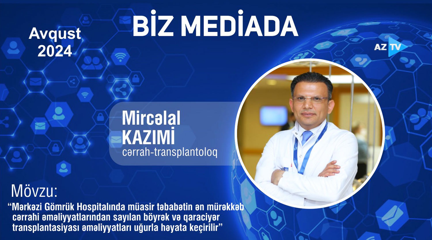 İcbari Tibbi Sığorta üzrə Dövlət Agentliyinin Xidmətlər Zərfi çərçivəsində Mərkəzi Gömrük Hospitalının Cərrahiyyə və orqan transplantasiyası şöbəsində müasir təbabətin ən mürəkkəb cərrahi əməliyyatlarından sayılan böyrək və qaraciyər transplantasiyası əməliyyatları uğurla həyata keçirilir. SİA xəbər verir ki, Mərkəzi Gömrük Hospitalının Cərrahiyyə və orqan transplantasiyası şöbəsinin rəisi transplantoloq, səhiyyə əlaçısı Mircəlal Kazımi bu mövzuda AZTV-yə müsahibə verib. Mircəlal həkimin çıxışını Sizə təqdim edirik. https://youtu.be/lm9hIoZJMsI