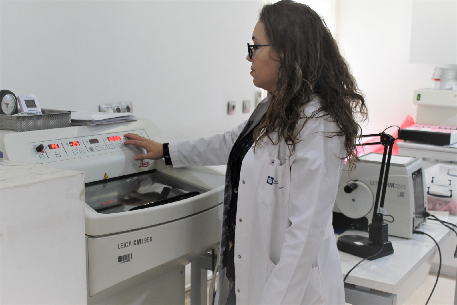 Patomorfoloji diaqnostik müayinələr həm şiş/neoplastik proseslərdə, həm də qeyri-şiş iltihabi patologiyalar zamanı aparılır. Əməliyyat sırasında aparılan təcili müayinələr zamanı toxumalar Leica Frozen cihazı ilə kəsilib hazırlanır. Geniş spektrumda immunohistokimyəvi boyamalar həm manual, həm də Leica BOND Max Biosystem cihazı ilə həyata keçirilir. Materialların ümumi işlənməsində hermetik biosistemdən istifadə olunur. Patomorfoloji laboratoriyada spesimenlər Leica CM 1100 (Almaniya), Sacura ACCU-CUT (Yaponiya) mikrotomlarda kəsilir, Nikon Eclipse 50 İ mikroskoplarda vizual müayinələr aparılır. Histoloji, histokimyəvi və immunohistokimyəvi tədqiqatlarda İtaliya və Almaniya istehsalı olan reaktivlərdən istifadə edilir.