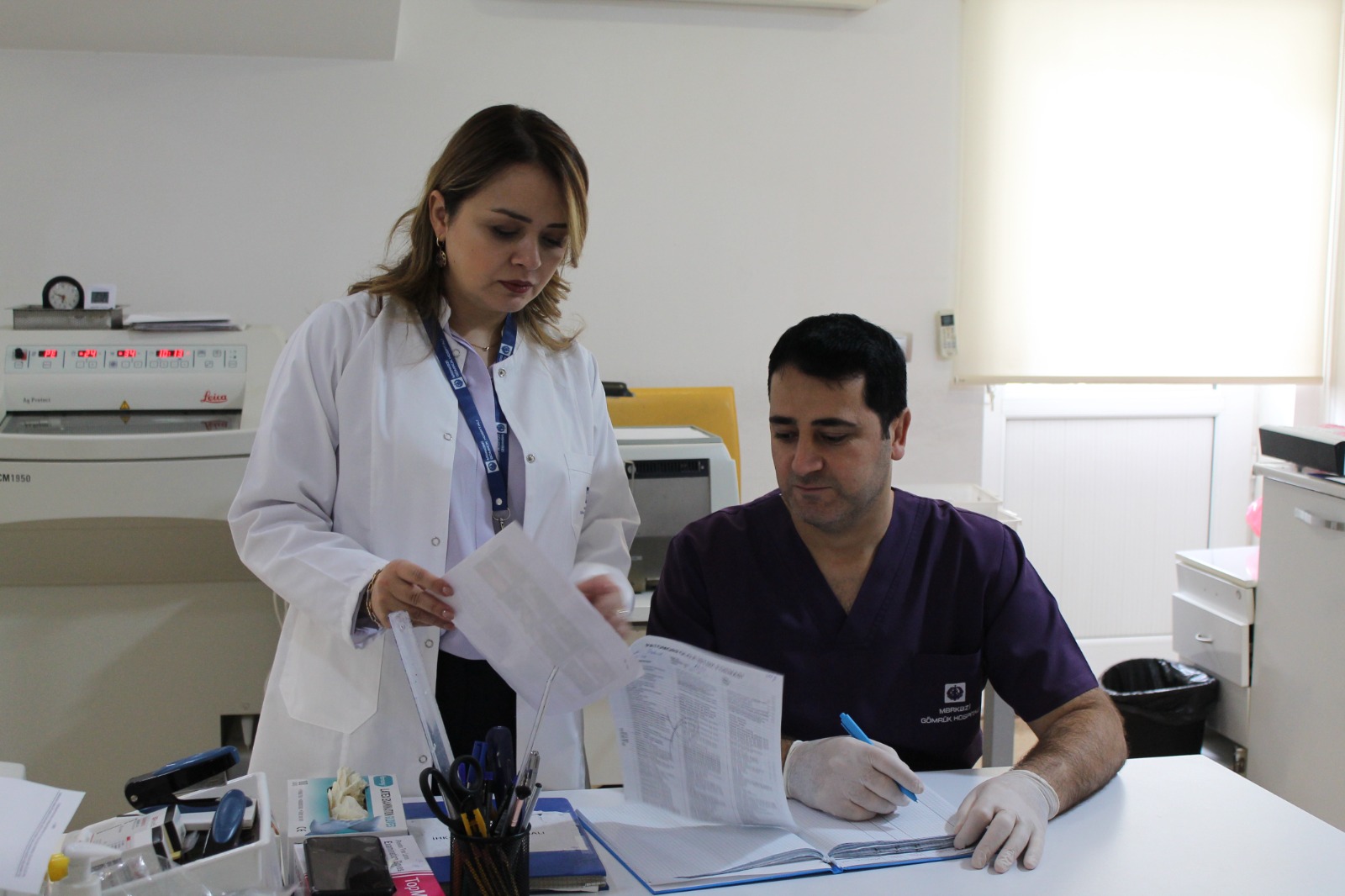 Patomorfoloji Diaqnostika şöbəsinin rəisi, uzman patomorfoloq Zərifə Yusifli, patomorfoloqlar Müqabil Şıxaliyev və Emin Mirzəyev müayinələri yüksək dəqiqliklə həyata keçirirlər.