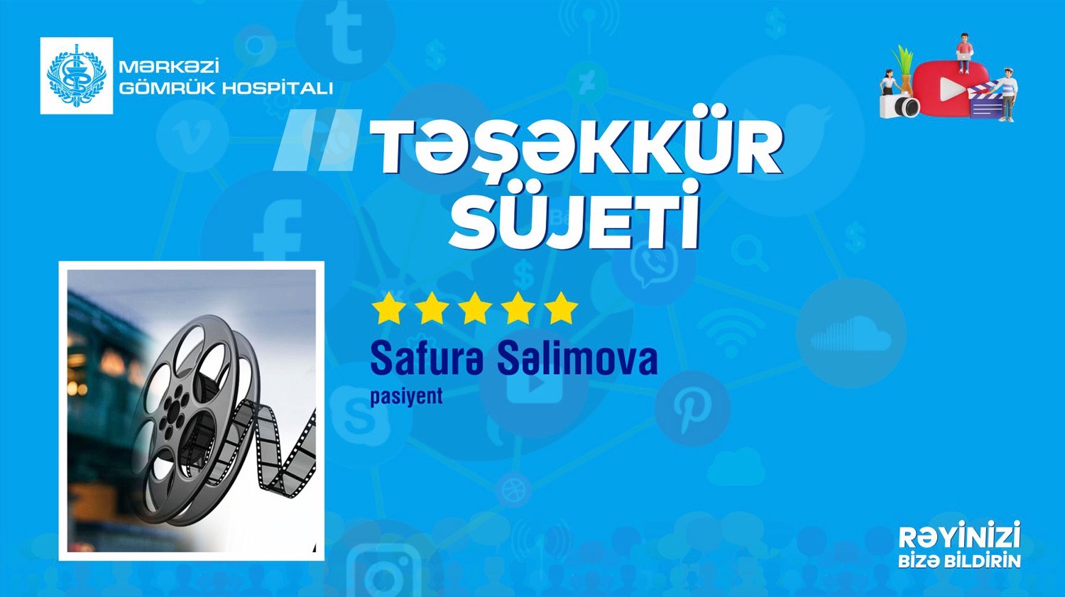 Pasiyent Safurə Səlimova ona göstərilən yüksək səviyyəli tibbi xidmətə görə dərin minnətdarlığını bildirib. SİA xəbər verir ki, Mərkəzi Gömrük Hospitalının pasiyenti Safurə Səlimova ona göstərilən yüksək səviyyəli tibbi xidmətə görə dərin minnətdarlığını bildirib. O, göstərilən diqqət və qayğıya görə Dövlət Gömrük Komitəsinin Tibbi Xidmət İdarəsinin rəisi Ceyhun Məmmədova, Mərkəzi Gömrük Hospitalının baş həkimi, t.e.d. Bəxtiyar Musayevə, Urologiya şöbəsinin rəisi, uroloq Bəhruz Xalıqova, Əməliyyatxana, Anesteziologiya və Reanimasiya şöbəsinin anestezioloq-reanimatoloqu Könül Həsənovaya və ona xidmət göstərən bütün tibb personalına təşəkkürünü ifadə edib və xoş arzularını çatdırıb. Safurə xanımın çıxışını Sizə təqdim edirik.