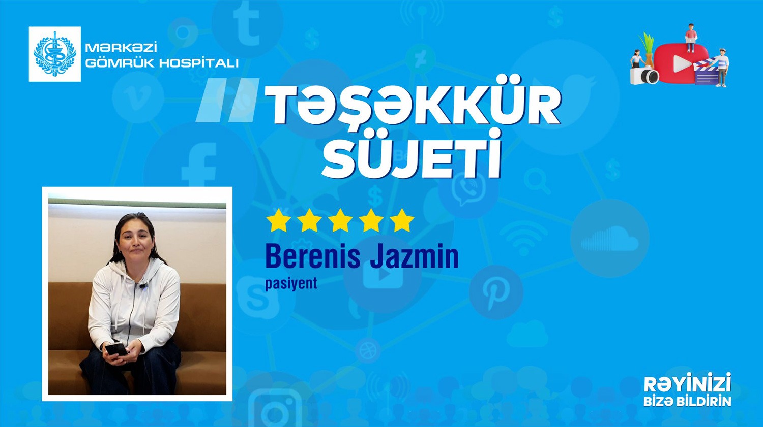 Afrika Berenis Jazmin ona göstərilən yüksək səviyyəli tibbi xidmətə və qayğıya görə Mərkəzi Gömrük Hospitalının rəhbərliyinə, Namiq həkimə və tibb personalına dərin minnətdarlığını ifadə edib. Sizə pasiyentimizin səmimi təşəkkür çarxını təqdim edirik.