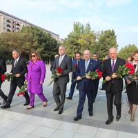 İlk öncə konfrans iştirakçıları və rəsmi qonaqlar Sumqayıt şəhərində Ulu Öndər Heydər Əliyevin abidəsini ziyarət edib, dahi şəxsiyyətin abidəsi önünə gül dəstələri düzərək, xatirəsini böyük hörmət və ehtiramla yad ediblər.