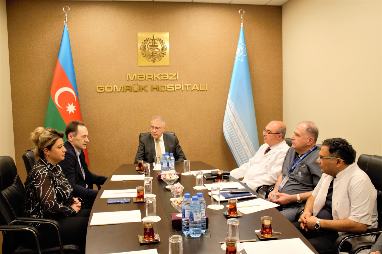 Mərkəzi Gömrük Hospitalında Belarusun Minsk Elmi-Praktiki Cərrahiyyə, Transplantologiya və Hematologiya Mərkəzinin Tibbi işlər üzrə direktor müavini, nefrologiya, böyrək əvəzedici terapiya və böyrək transplantasiyası üzrə respublika mərkəzinin rəhbəri, həkim-cərrah, tibb elmləri doktoru, professor Kaloçik Oleq Valentinoviç ilə görüş keçirilib.