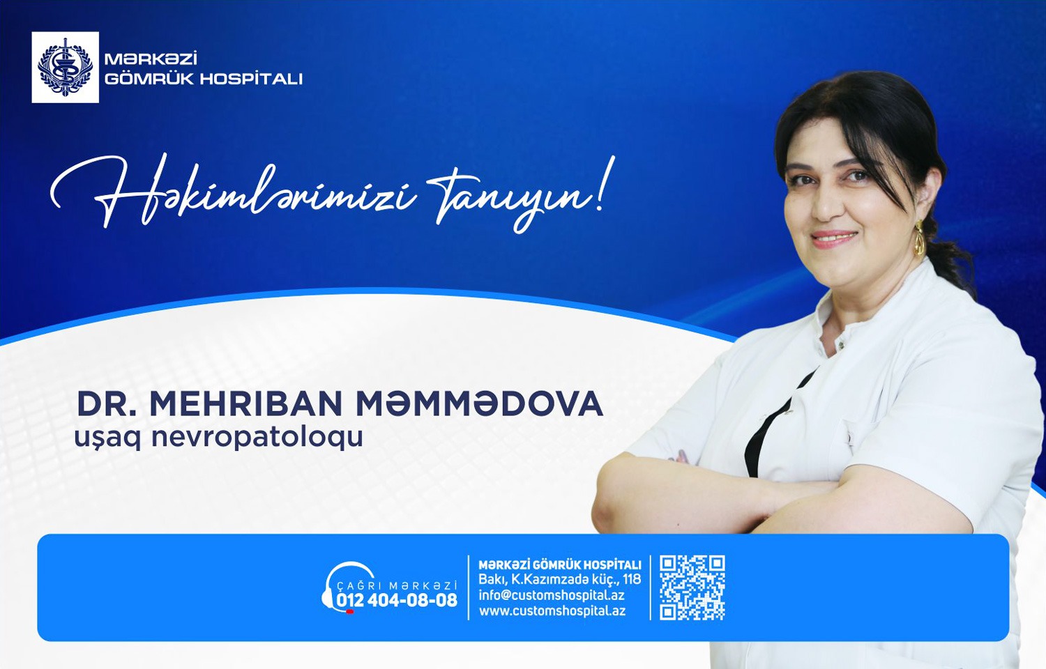 DR.MEHRİBAN MƏMMƏDOVA Mərkəzi Gömrük Hospitalında uşaqlarda sinir xəstəlikləri, baş beyin və onurğa beyin travmaları, epilepsiya, enurezlər, uşaq serebral iflicləri, sinir sisteminin funksional pozğunluqları: nevrozlar, periferik sinir sistemi xəstəlikləri, pleksid, uşaqlarda nitq ləngimələri, motor inkişafın ləngiməsi və digər xəstəliklərin müalicəsi ilə məşğuldur. Həkim barədə daha ətraflı məlumat almaq üçün bu linkə daxil ola bilərsiniz: https://customshospital.az/mehriban-mammadova/.