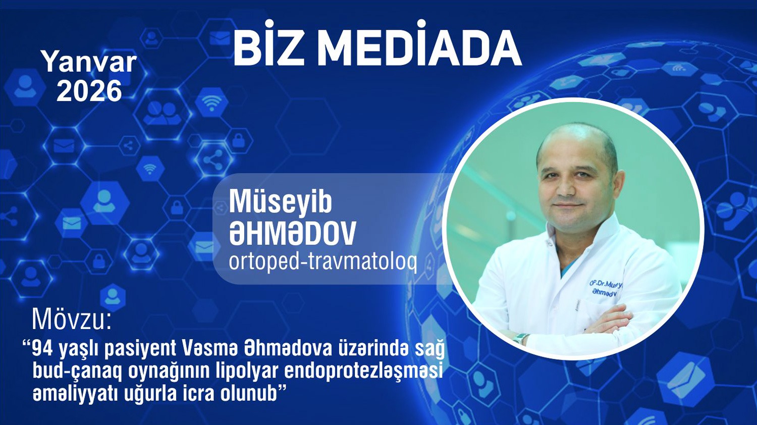 Mərkəzi Gömrük Hospitalının Travmatologiya və Ortopediya şöbəsinin travmatoloqu Müseyib Əhmədov 94 yaşlı pasiyent Vəsmə Əhmədova üzərində icra etdiyi uğurlu sağ bud-çanaq oynağının lipolyar endoprotezləşməsi əməliyyatı barədə ətraflı məlumat verib. Həmçinin, pasiyentin oğlu Nazim Əhmədov anasına göstərilən yüksək keyfiyyətli tibbi xidmətlərə görə təşəkkürünü bildirib. Çarxı Sizə təqdim edirik