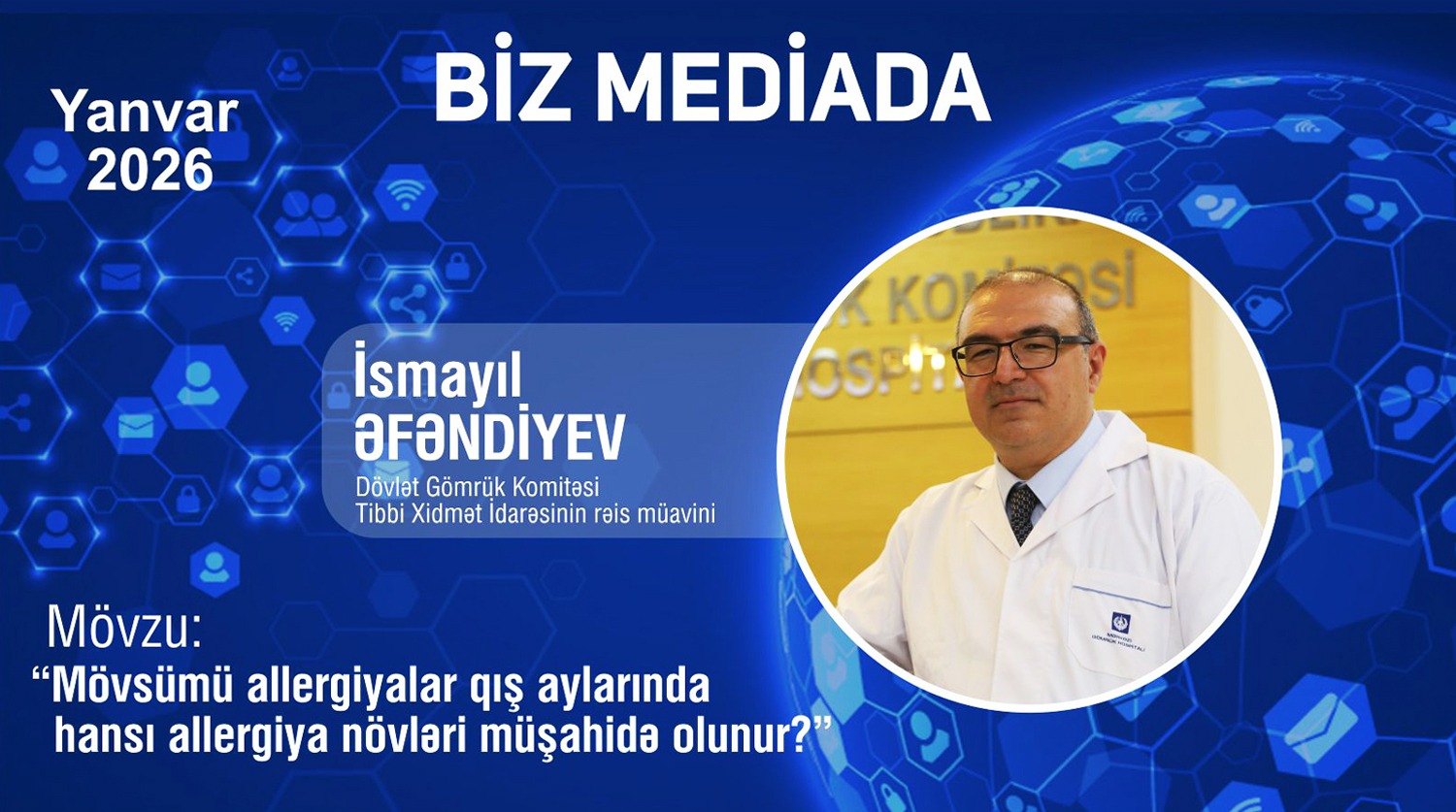Azərbaycan Respublikası Dövlət Gömrük Komitəsi Tibbi Xidmət İdarəsinin rəis müavini, t.ü.f.d., dosent İsmayıl Əfəndiyev AZTV-də yayımlanan “TeleSəhər” proqramının “Telehəkim” rubrikasında “Mövsümü allergiyalar: qış aylarında hansı allergiya növləri müşahidə olunur?” mövzusunda müsahibə verib.