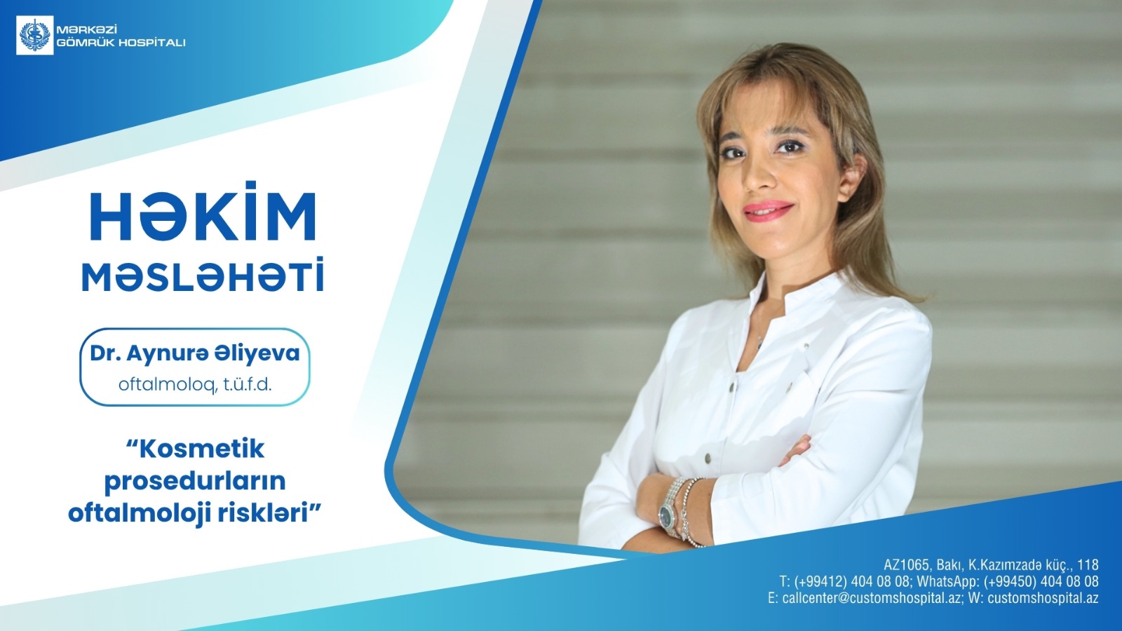 Mərkəzi Gömrük Hospitalının həkim-oftalmoloqu, tibb üzrə fəlsəfə doktoru Dr. Aynurə Əliyeva “Həkim məsləhəti” rubrikasında “Kosmetik prosedurların oftalmoloji riskləri” mövzusunda ətraflı məlumat verib.