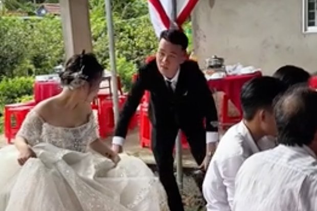 ...SİA xəbər verir ki, VietnamNet-in məlumatına görə, vyetnamlı yeni evlənən cütlük boy fərqinin maneəsini təsirli bir mərasimlə dəf edib.