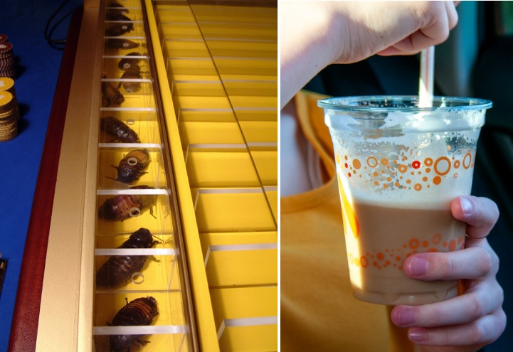 Bu, tarakanlar və qurudulmuş sarı un qurdları ilə kapuçino və qarışqalarla qarışdırılmış qara qəhvədir.
