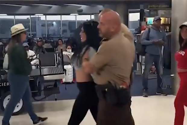 Nəticədə, onların American Airlines təyyarəsinə minməsinə icazə verilmədi və qandallarla müşayiət olundular. Görüntülərdə qadınlardan birinin həbsindən sonra bir neçə dəfə cinsi əlaqədə olduğu və bir neçə polis məmurunun müşayiəti ilə seksin kəsildiyi görünür.