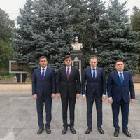 Azərbaycan nümayəndə heyəti Buxarestdə Ulu Öndər Heydər Əliyevin büstünü ziyarət edib