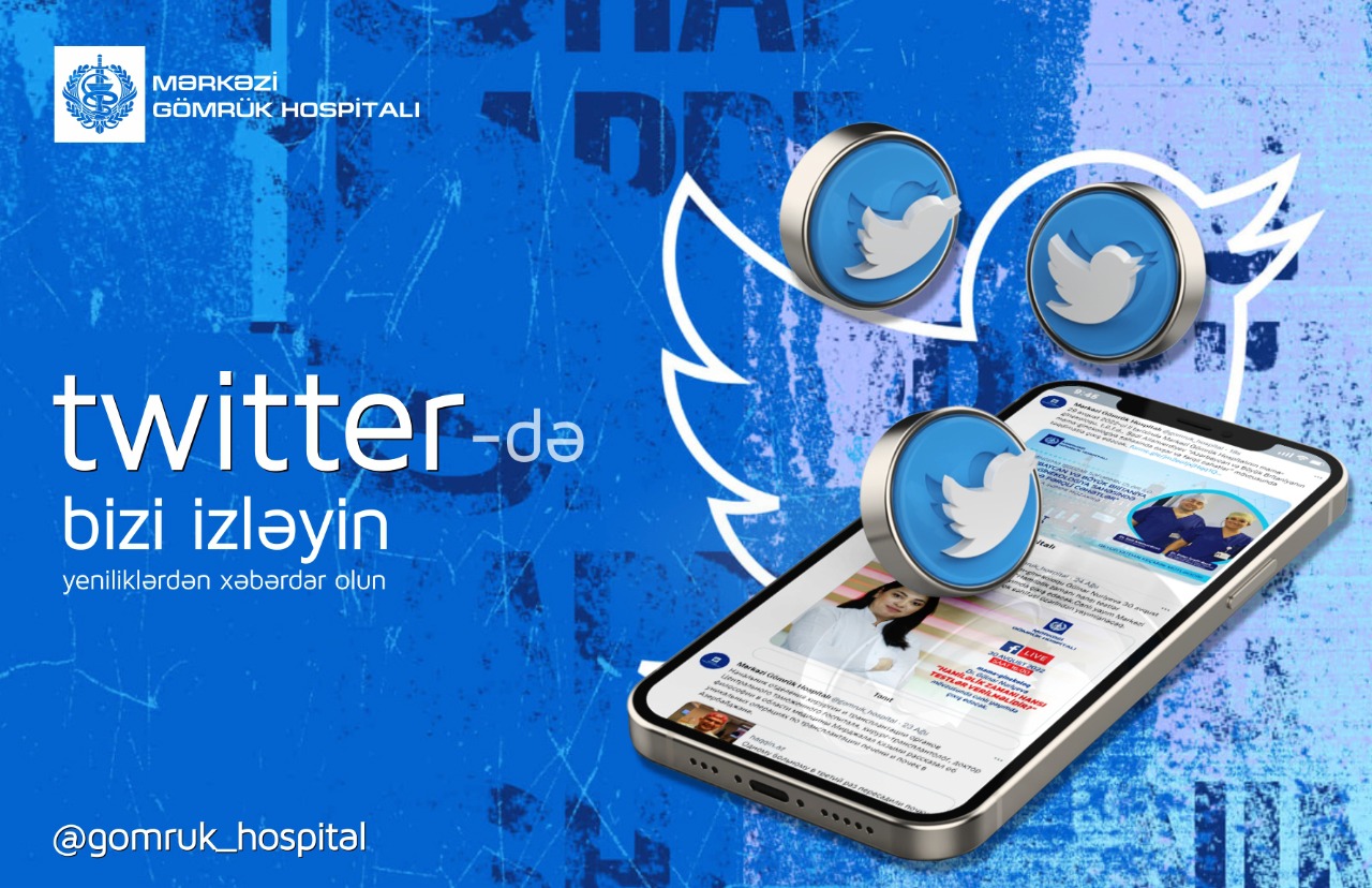Mərkəzi Gömrük Hospitalının “Twitter” səhifəsi istifadəyə verilib. “Twitter” səhifəsi vasitəsilə Mərkəzi Gömrük Hospitalının fəaliyyəti haqqında xəbərləri, diaqnostik metodlar, onlayn xidmət və digər faydalı məlumatları izləyicilərə çatdırırıq. Müasir dövrdə “Twitter” hesabı ən operativ ilkin informasiya mənbəyi hesab olunur.