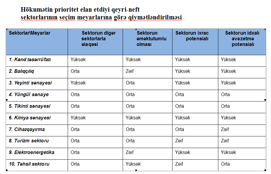 Bəs klaster yanaşma ilə prioritet götürüləcək qeyri-neft sahələri hansılar ola bilər və onların hansı perspektivləri var?