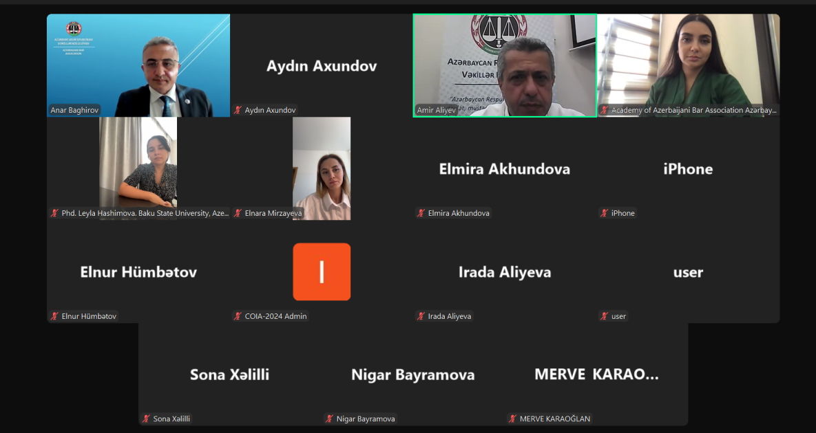 Avqustun 29-da Azərbaycan Respublikası Vəkillər Kollegiyası (ARVK) Rəyasət Heyətinin sədri, hüquq üzrə fəlsəfə doktoru Anar Bağırov, Vəkillər Kollegiyası Akademiyasının rektoru, hüquq elmləri doktoru, professor Əmir Əliyev, Vəkillər Kollegiyası Akademiyasının elmi katibi Mələkxanım Rəhimova, Baş Prokurorluğun Təşkilat və icraya nəzarət idarəsinin rəis müavini, ədliyyə müşaviri, hüquq üzrə fəlsəfə doktoru Elnur Hümbətov, eyni zamanda İnsan hüquqları və informasiya hüququ UNESCO kafedrasının müəllimi, hüquq üzrə fəlsəfə doktoru Leyla Həşimova və Beynəlxalq xüsusi hüquq və Avropa hüququ kafedrasının dosenti, hüquq üzrə fəlsəfə doktoru Elnarə Mirzəyeva İstanbul Universiteti - Cərrahpaşada təşkil olunmuş “The 9th Conference on Control and Optimization with Industrial Applications - COIA-2024” konfransında onlayn məruzələrlə çıxış ediblər. Bu barədə Kollegiyanın mətbuat xidmətindən SİA-ya məlumat verilib.