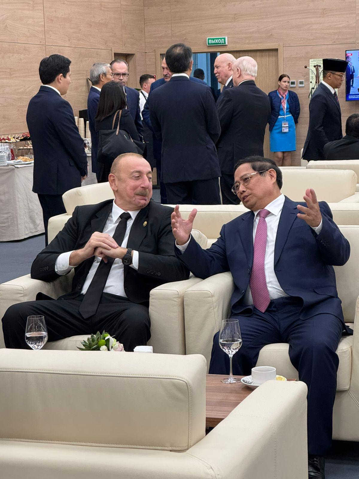 Kazanda keçirilən BRICS sammiti çərçivəsində Azərbaycan Prezidenti İlham Əliyev Vyetnamın Baş naziri Fam Min Tin ilə görüşüb. SİA xəbər verir ki, qeyri-rəsmi qısa söhbət zamanı tərəflər ikitərəfli münasibətləri və beynəlxalq məsələləri müzakirə ediblər.