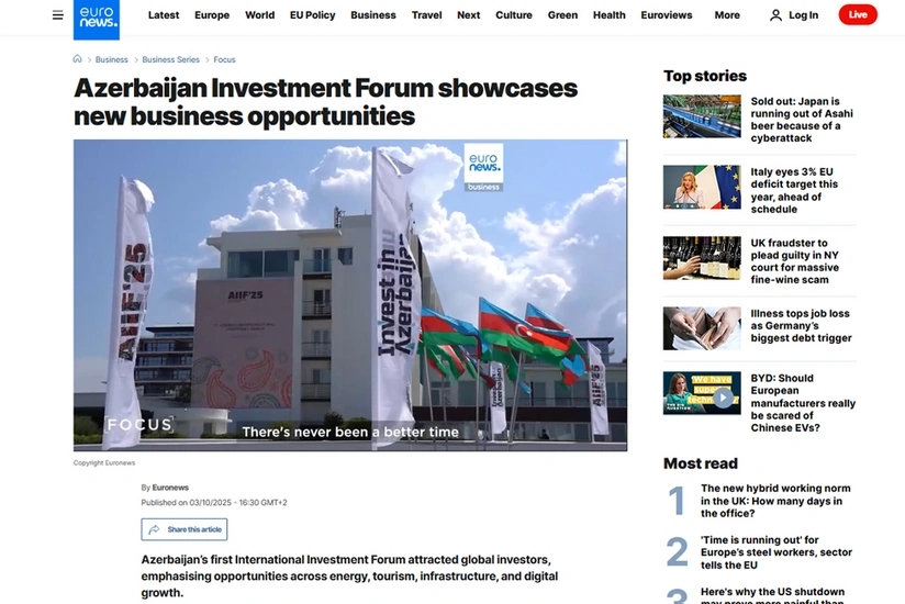 Euronews: AIIF 2025 Azərbaycanın iqtisadiyyatın diversifikasiyasına sadiqliyini nümayiş etdirib