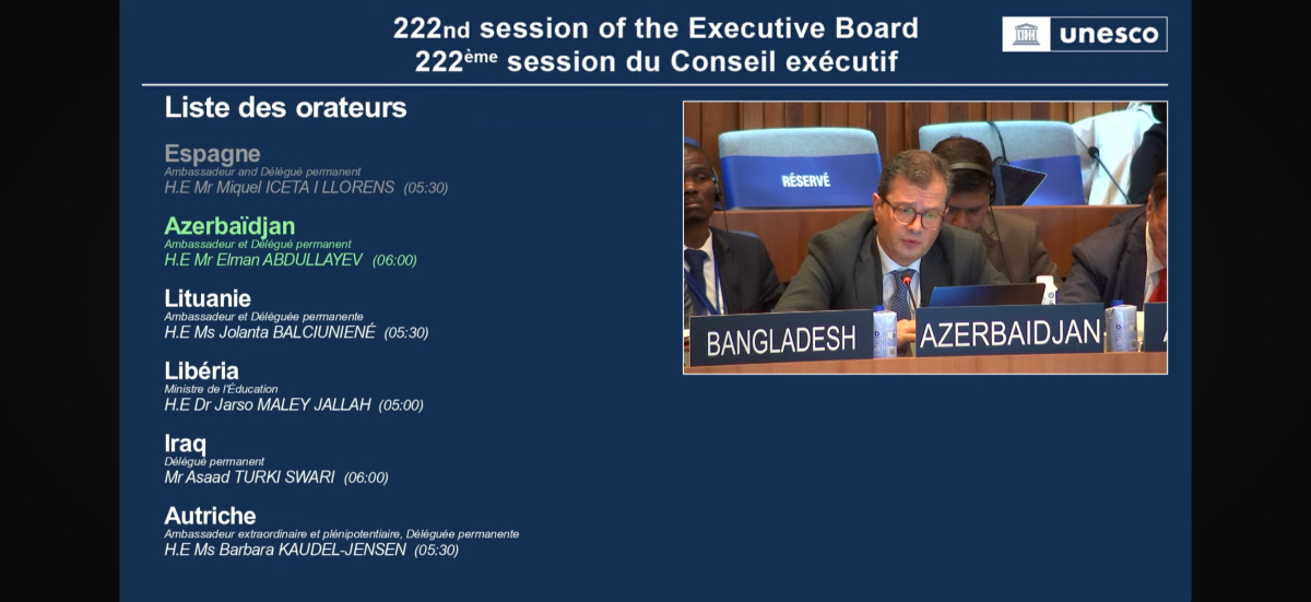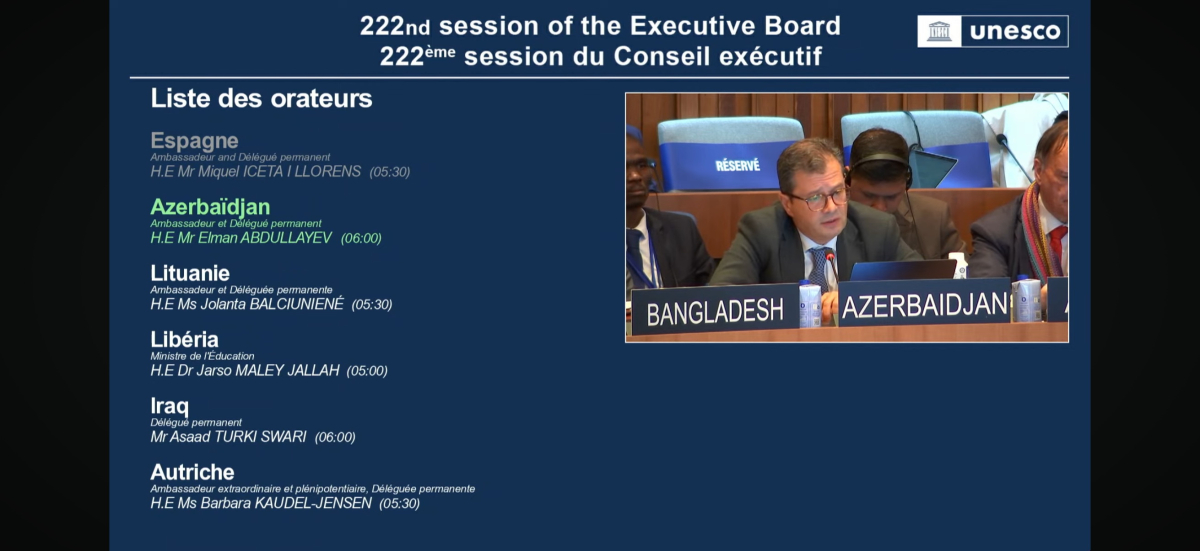 UNESCO-nun İcraiyyə Şurasının 222-ci sessiyasında Azərbaycanın bəyanatı səsləndirilib - FOTOLAR