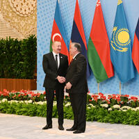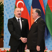 Azərbaycan Respublikasının Prezidenti İlham Əliyev MDB Dövlət Başçıları Şurasının iclasında iştirak etmək üçün Düşənbədəki "Millət" sarayına gəlib. SİA xəbər verir ki, Tacikistan Respublikasının Prezidenti Emoməli Rəhmon dövlətimizin başçısını qarşılayıb.