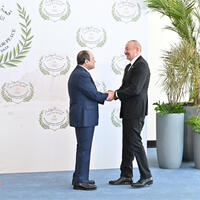 Misir Ərəb Respublikasının Prezidenti Əbdülfəttah əs-Sisi dövlətimizin başçısını qarşıladı, sonra birgə foto çəkdirildi.