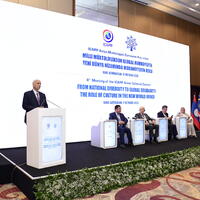 YAP Sədrinin müavini vurğulayıb ki, müasir dövrdə beynəlxalq münasibətlər sistemində ciddi geostrateji dəyişikliklər baş verməkdədir. Onun sözlərinə görə, qlobal kataklizmlər, çoxsaylı təhdid və çağırışlar fonunda yeni dünya nizamına transformasiya məsələsi aktual müzakirə predmetinə çevrilmişdir: “Dünyada hərbi-siyasi konfrontasiyaların, humanitar böhranların, dini və etnik müstəvidə bir çox ziddiyyətlərin yaşandığı bir dönəmdə müxtəlif mədəniyyətlərin daşıyıcısı olan xalqlar arasında sabitlik və tərəqqi naminə dialoq prosesi ümumbəşəri dəyərlərin qorunması və ölkələrin təhlükəsizliyi baxımından müstəsna əhəmiyyət kəsb edir”.