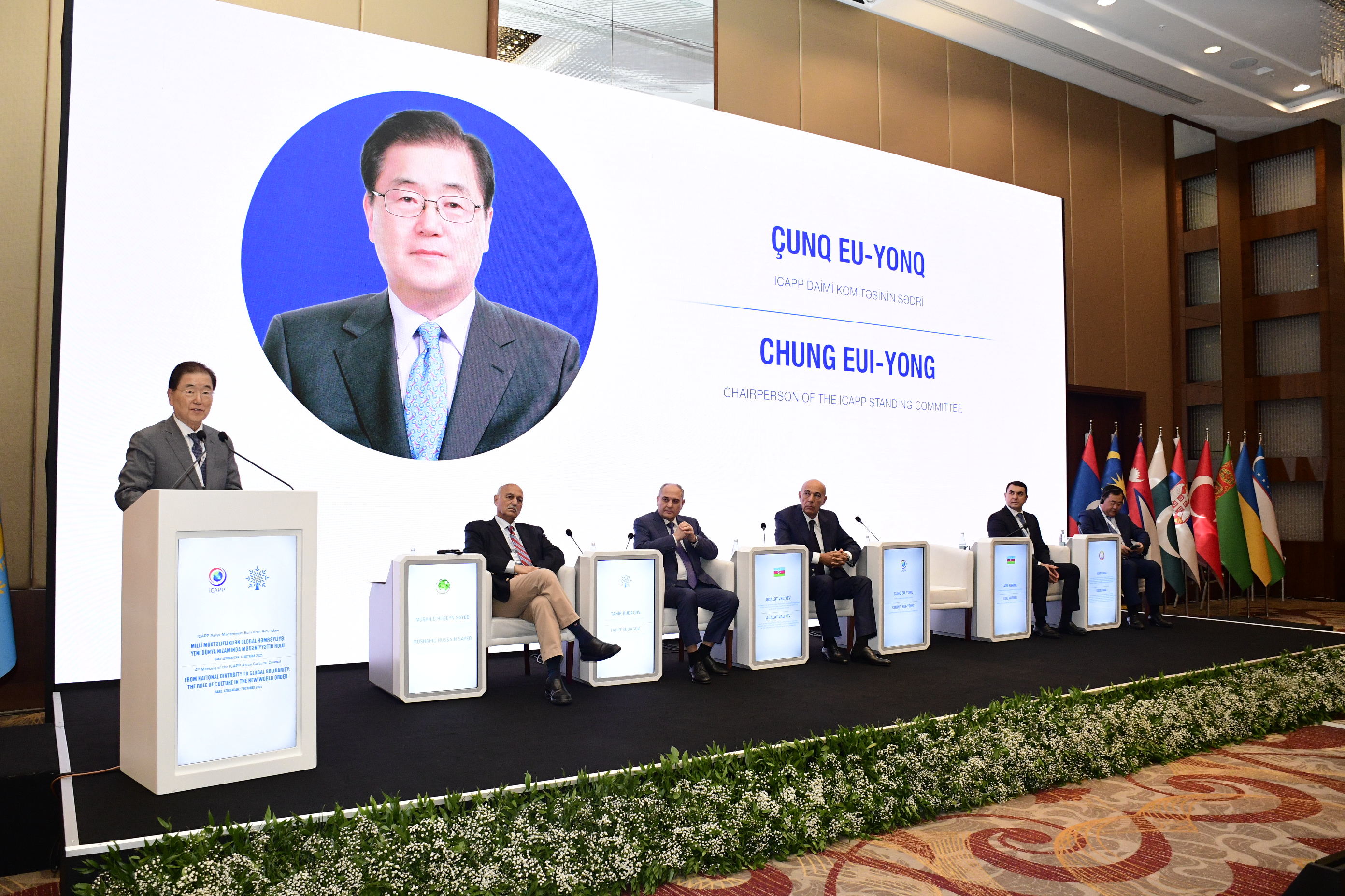 Sonra çıxış edən ICAPP Daimi Komitəsinin sədri, Koreya Respublikasının sabiq xarici işlər naziri Çunq Eu-yonq tədbirin yüksək səviyyədə təşkilinə və səmimi qonaqpərvərliyə görə Yeni Azərbaycan Partiyasına təşəkkür edib. ICAPP Daimi Komitəsinin sədri bildirib ki, mədəniyyət sadəcə keçmişi əks etdirmir, eyni zamanda, gələcəyimizi formalaşdıran dinamik qüvvədir. O, mədəni irsin qorunmasının və bu istiqamətdə fəaliyyətlərin təşviqinin cəmiyyətlərin inklüzivliyini effektiv şəkildə artıra biləcəyinə və sosial birliyi gücləndirəcəyinə əminliyini ifadə edib.