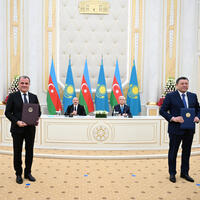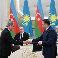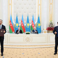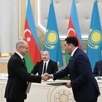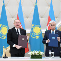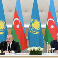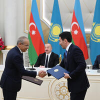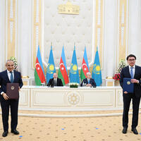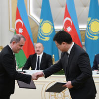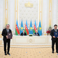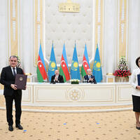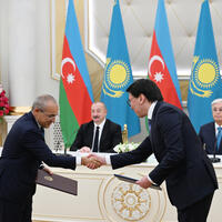 Sonra Azərbaycan-Qazaxıstan sənədləri mübadilə olundu.