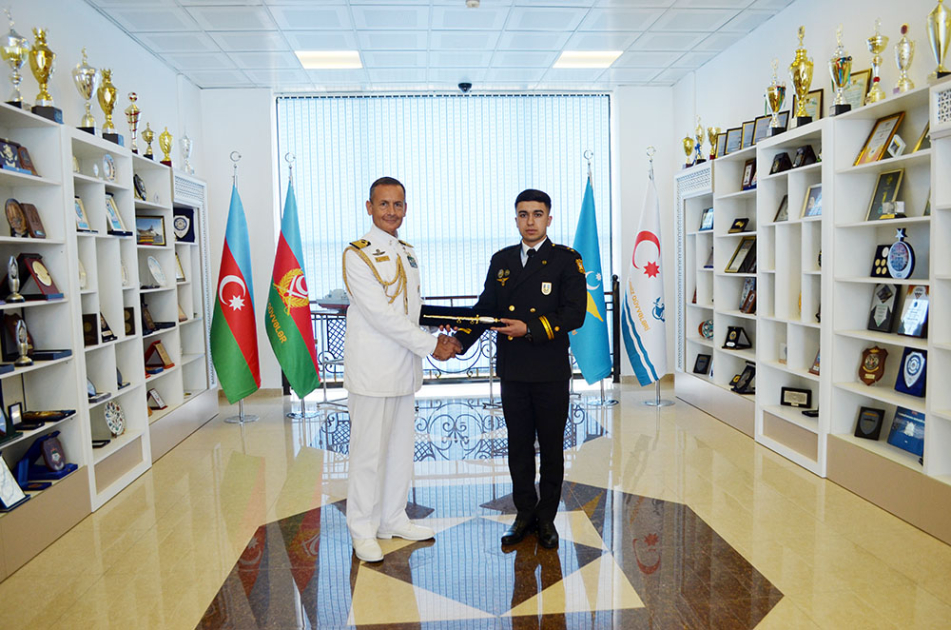 Sonda italiyalı qonaq "Azərbaycan Respublikasının müdafiə naziri ilə İtaliya Respublikasının müdafiə naziri arasında Hərbi Dəniz Qüvvələrinin şəxsi heyətinin təlim və təhsili sahəsində əməkdaşlıq haqqında Niyyət Protokolu"na əsasən, Milli Müdafiə Universitetinin tabeliyində fəaliyyət göstərən Heydər Əliyev adına Hərbi İnstitutun HDQ fakültəsini 2024-2025-ci tədris ilində fərqlənmə ilə bitirən leytenant Hümbət Qasımova İtaliya HDQ komandanı adından “Tələbələrin şərəf qılıncı” xatirə hədiyyəsini və sertifikatı təqdim edib.